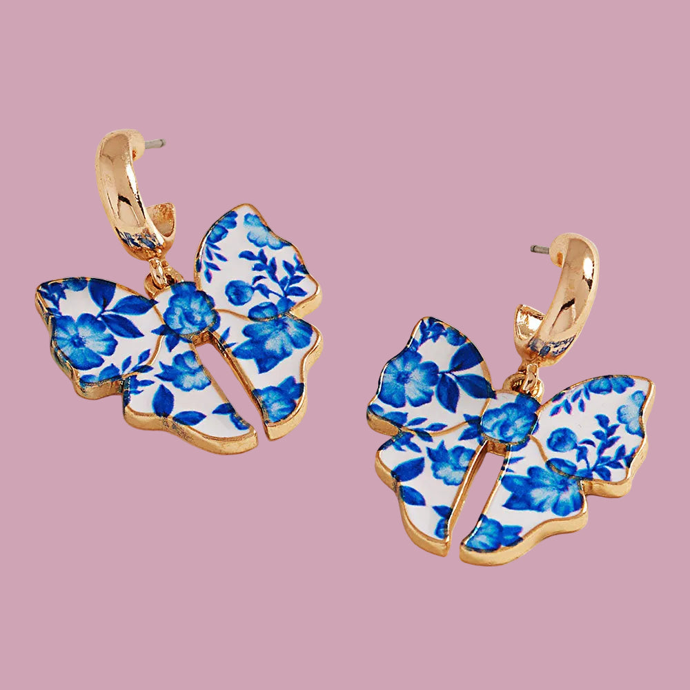 Blue Peony Bow Dangles