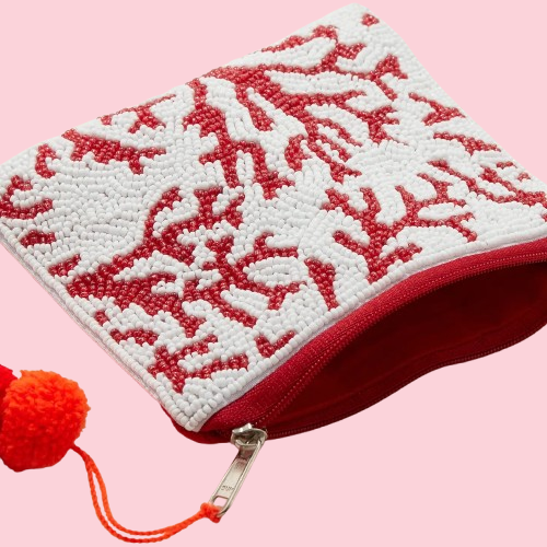 Coral Pattern Beaded Pouch
