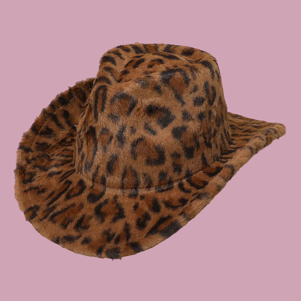 Unleash your wild side with our Fuzzy Wild Cowboy Hat! This playful western statement piece features an allover animal-inspired faux fur texture that brings bold personality and eye-catching appeal to any outfit. The structured crown and wide brim silhouette create the perfect blend of classic cowboy charm and fashion-forward flair.