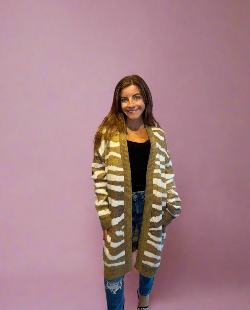 Khaki Zebra Print Cardigan
