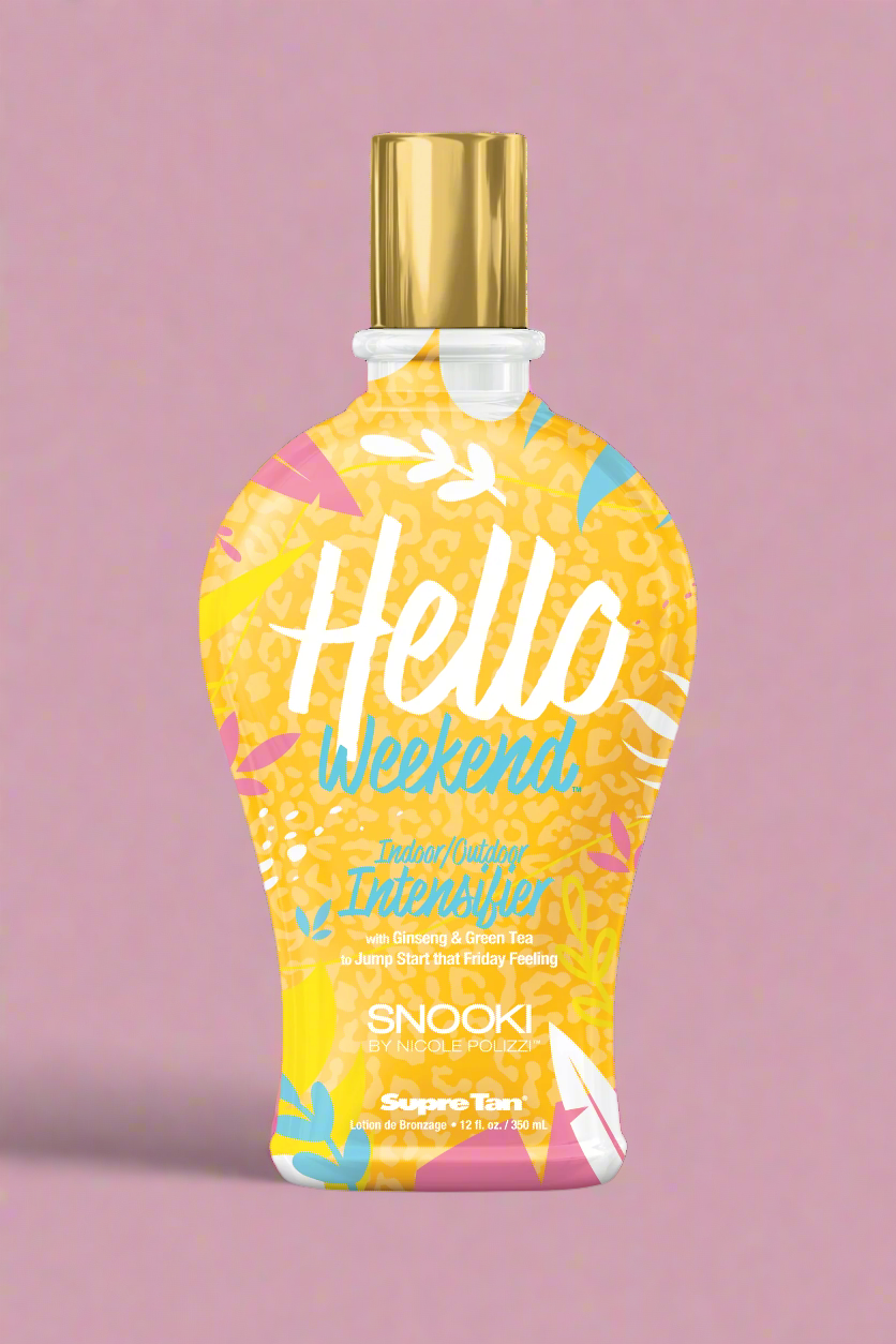 It’s not just a weekend, it’s a Vibe! Get weekend ready with Snooki® Hello Weekend Indoor/Outdoor Intensifier that will keep your skin feeling energized with a blend of Ginseng, Green Tea and Caffeine. Our Tattoo ColorShield Technology with nourishing Sea Kelp, Aloe and Shea Butter helps to maintain the color and vibrancy of tattoos, while Dark Tanning Intensifiers including Tyrosine help you achieve the tan you have always wanted. Life is good with Vitamins rich in antioxidants and calming Peppermint Extract to help take your skin to the next level for the weekend you have been waiting for. Cheers and Hello Weekend!