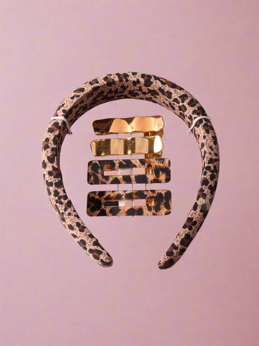 This set features five unique pieces, including vibrant headbands and elegant hair clips, perfect for adding a touch of flair to any outfit.