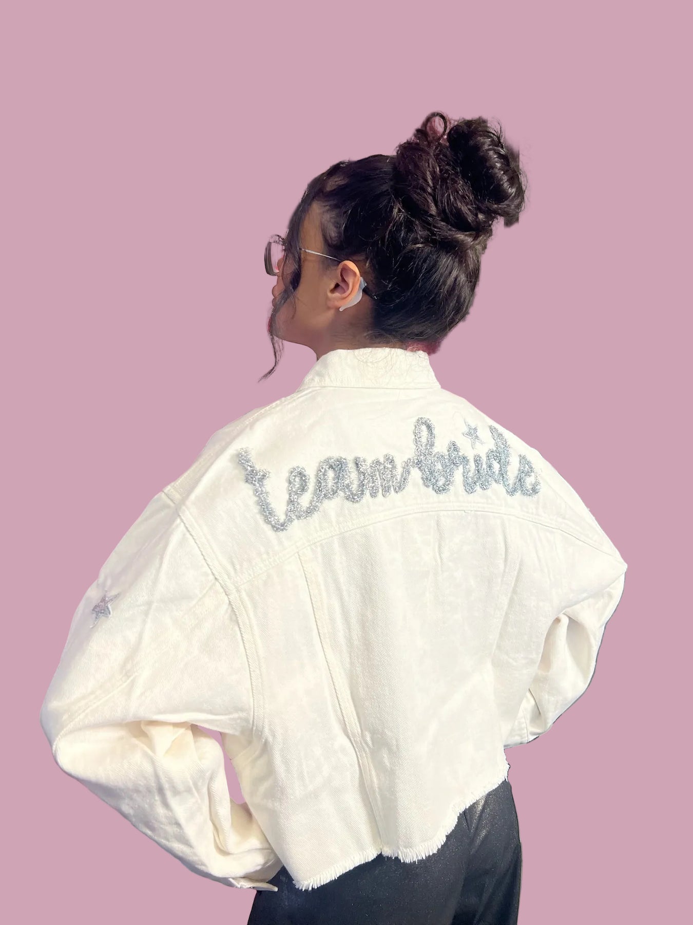 Celebrate in style with this dreamy bridal jacket that adds the perfect finishing touch to your special moments. Whether you're the bride, part of the bridal party, or celebrating a bachelorette weekend, this starry design brings playful elegance to every occasion.